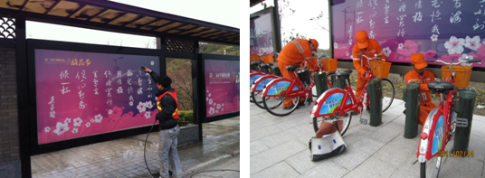 ?? 清洗公交站牌? ????????????????????????檢修公共自行車