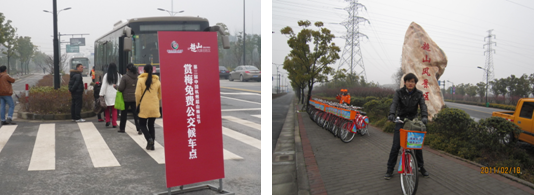 ? 賞梅免費(fèi)公交深受游客歡迎????? ????????公共自行車臨時租借點(diǎn)